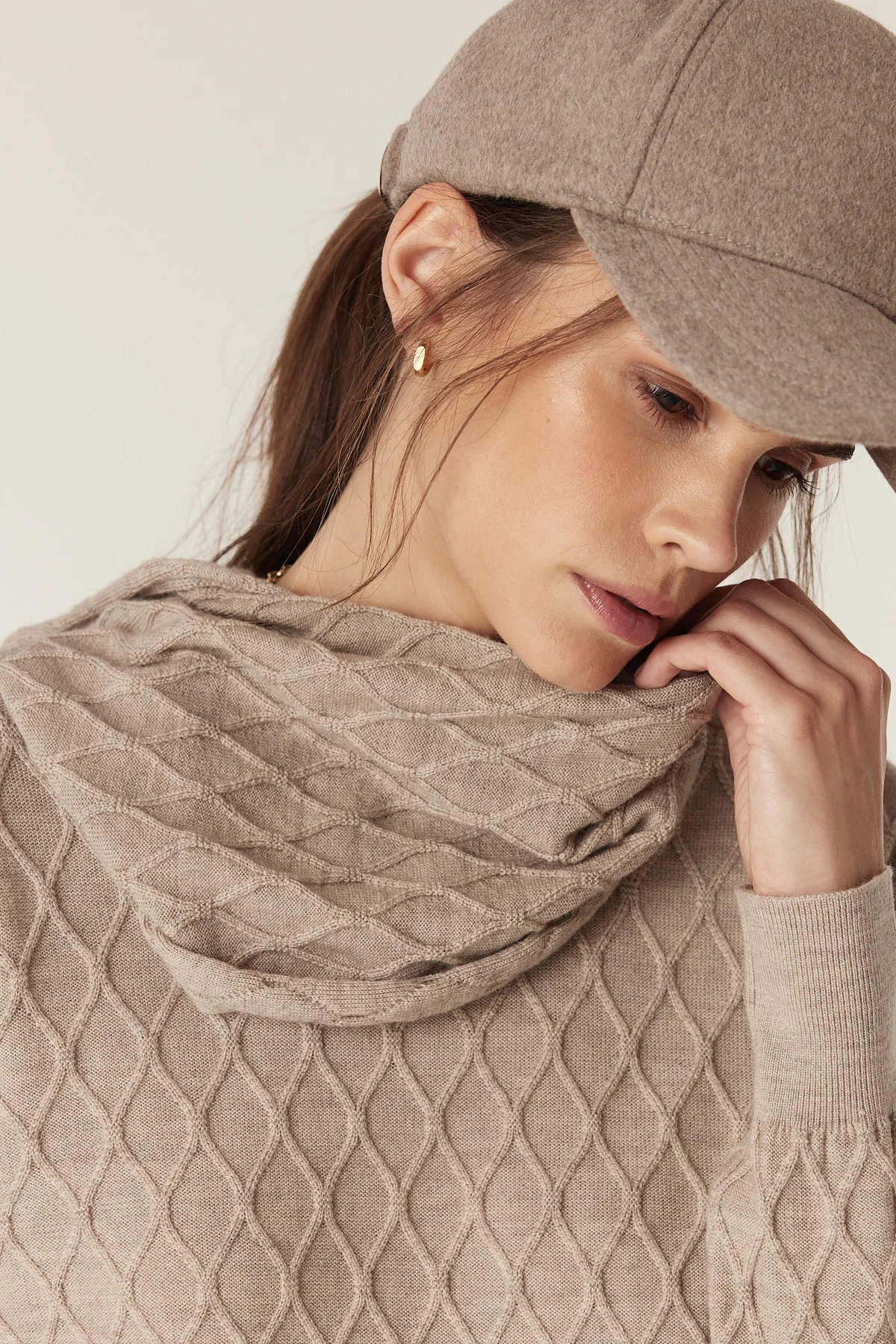 - Diamond cable stitch detail throughout